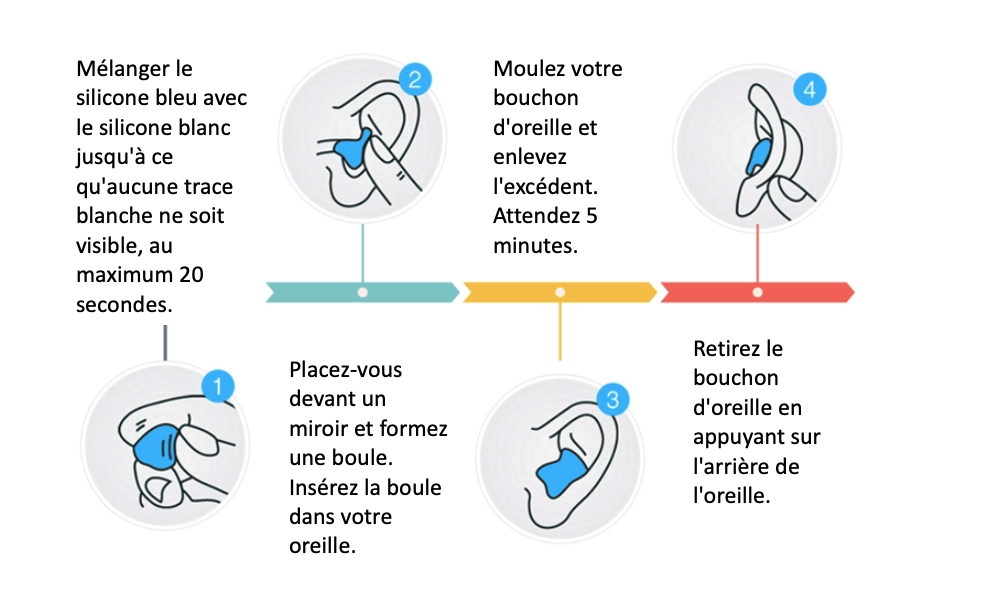 Moulez vos bouchons d’oreilles personnels à vos oreilles de manière simple, rapide et efficace. Ces bouchons d’oreilles protègent à la fois des ondes sonores et de l’humidité. Comme les bouchons conservent leur forme, ils peuvent être utilisés plusieurs fois. Vous pouvez les laver au lave-vaisselle. Ils empêchent l’eau de pénétrer dans l’oreille lorsque vous nagez. Ils bloquent également le bruit lors de vos voyages en avion ou pendant votre sommeil. Ils sont réutilisables pendant une longue période, une durée de vie de 10 ans n’est pas rare. Mais surtout, ils sont confortables à utiliser, car ils sont moulés sur la forme de vos oreilles.