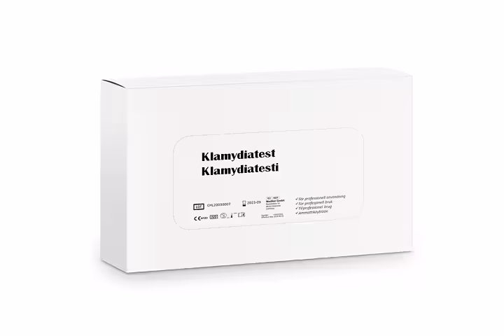 Chlamydia-sneltest voor de kwalitatieve detectie van het chlamydia-antigeen in de baarmoederhals (vrouw) of urinebuis (man), met resultaten na 5-10 minuten. Nauwkeurigheid 96,6%. CE-markering voor professioneel gebruik.