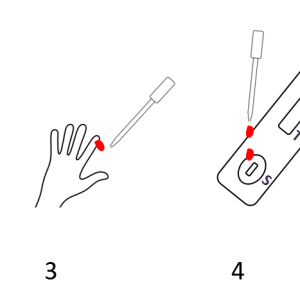 - Add 2 drops of blood to the test cassette well (S)